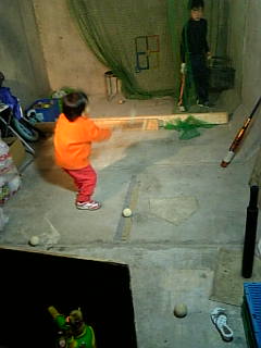 楽しそうに兄ちゃんたち数名に野球の相手をしてもらってます。