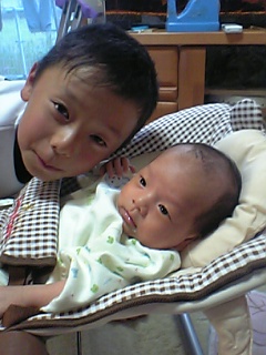 顯臣は、顯人をみた瞬間、「おれとソックリやん!」と嬉しそう。まぁ、ホントにソックリだと判ってるのかはさておき(笑)