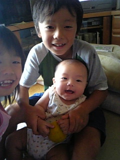 長兄顯臣は、「オレが面倒を見る!」と張り切っております。顯人が大きくなったら野球を教えるそうです。